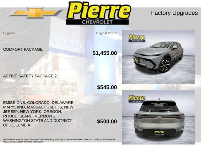 All vehicles are one of each. A dealer documentary service fee of up to $200 may be added to the sale price or capitalized cost. All financing is subject to credit approval. Any market adjustment above MRSP applies to all. Prices exclude tax, title, and license. Advertised price valid for Washington state residents only. Pricing and availability are subject to change at any time. One vehicle at this price per household or business. No FAN code purchases at this price. All transactions are negotiable including price, trade allowance, interest rate (of which the dealer may retain a portion), term, and documentary service fee. Any agreement is subject to execution of contract documents. Every reasonable effort is made to ensure the accuracy of this data. Please verify any information in question with a dealership sales representative. Pierre Chevrolet, we service not only the Seattle area Chevrolet customer needs, but also the entire state of Washington and beyond. Our customers come from Seattle, Bremerton, Bellevue, Everett, Wenatchee, Arlington, Burlington, Marysville, Lynnwood, Tacoma, and further. Price includes: $1250 - GM Conquest Private Offer. Exp. 03/02/2026 $500 - GM Rewards Card Sales Sign Up and Spend Offer. Exp. 06/30/2026 $6500 - GM Consumer Cash Program. Eligible Customers: Customers who purchase one of the eligible models. Exp. 03/02/2026