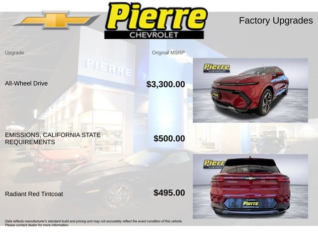 All vehicles are one of each. A dealer documentary service fee of up to $200 may be added to the sale price or capitalized cost. All financing is subject to credit approval. Any market adjustment above MRSP applies to all. Prices exclude tax, title, and license. Advertised price valid for Washington state residents only. Pricing and availability are subject to change at any time. One vehicle at this price per household or business. No FAN code purchases at this price. All transactions are negotiable including price, trade allowance, interest rate (of which the dealer may retain a portion), term, and documentary service fee. Any agreement is subject to execution of contract documents. Every reasonable effort is made to ensure the accuracy of this data. Please verify any information in question with a dealership sales representative. Pierre Chevrolet, we service not only the Seattle area Chevrolet customer needs, but also the entire state of Washington and beyond. Price includes: $1250 - GM Conquest Private Offer. Exp. 04/30/2026 $500 - GM Rewards Card Sales Sign Up and Spend Offer. Exp. 06/30/2026 $8000 - GM Consumer Cash Program. Eligible Customers: Customers who purchase one of the eligible models. Exp. 04/30/2026