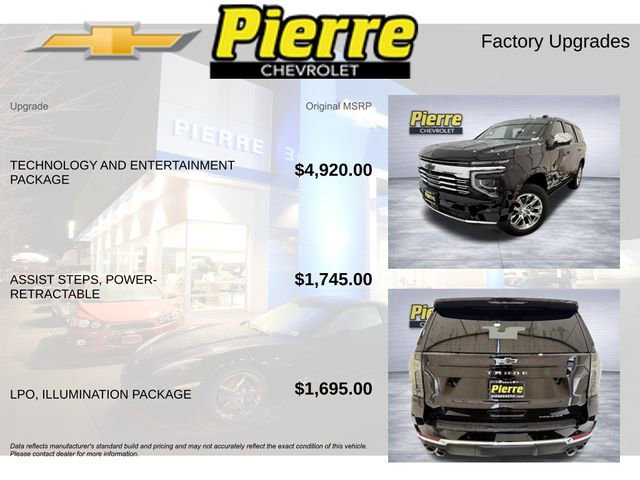 2026 CHEVROLET TAHOE 4WD PREMIER ** PREMIER PREFERRED EQUIPMENT GROUP 1LZ (INCLUDED) ** CONVENIENCE PACKAGE (INCLUDED: POWER PANORAMIC SUNROOF, REAR SEAT MEDIA SYSTEM, POWER-FOLDING 3RD ROW SEAT, REAR PEDESTRIAN ALERT, ENHANCED AUTOMATIC EMERGENCY BRAKING, SIDE BICYCLIST ALERT, TRAILER SIDE BLIND ZONE ALERT) ** ILLUMINATION PACKAGE (DEALER INSTALLED) ($1,895: ILLUMINATED DOOR SILL PLATES, BLACK ILLUMINATED FRONT BOWTIE EMBLEM, ILLUMINATED REAR BOWTIE EMBLEM, ILLUMINATED INSTRUMENT PANEL, ILLUMINATED LIFTGATE SILL PLATE) ** EXTERIOR: BLACK ** INTERIOR: JET BLACK ** 5.3L ECOTEC3 V8 ** 10-SPEED AUTOMATIC ** 4WD