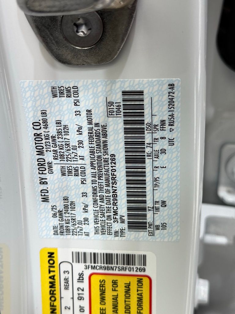 Equipment Group 200A, 225/65 R17 102H All-Season BSW Tires, 17" Carbon Gray High Gloss Wheels, Convenience Package, Supplemental PTC Heater, AM/FM Stereo with 6 Speakers, Auto Start-Stop Technology, Brakes, 4-Wheel Disc/ABS, Ford Co-Pilot360 Assist+, FordPass Connect, HOSS 1.0 Off-Road Tuned Suspension, Rear View Camera, Remote Keyless Entry, SiriusXM (service not available in Alaska & Hawaii), SYNC 4 with Enhanced Voice Recognition & 13.2" Screen, Terrain Management System-5.