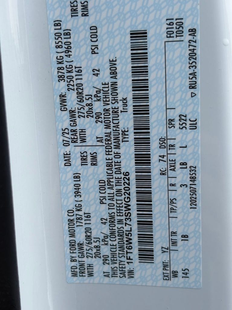 - GVWR: 3,878kg (8,550lbs)