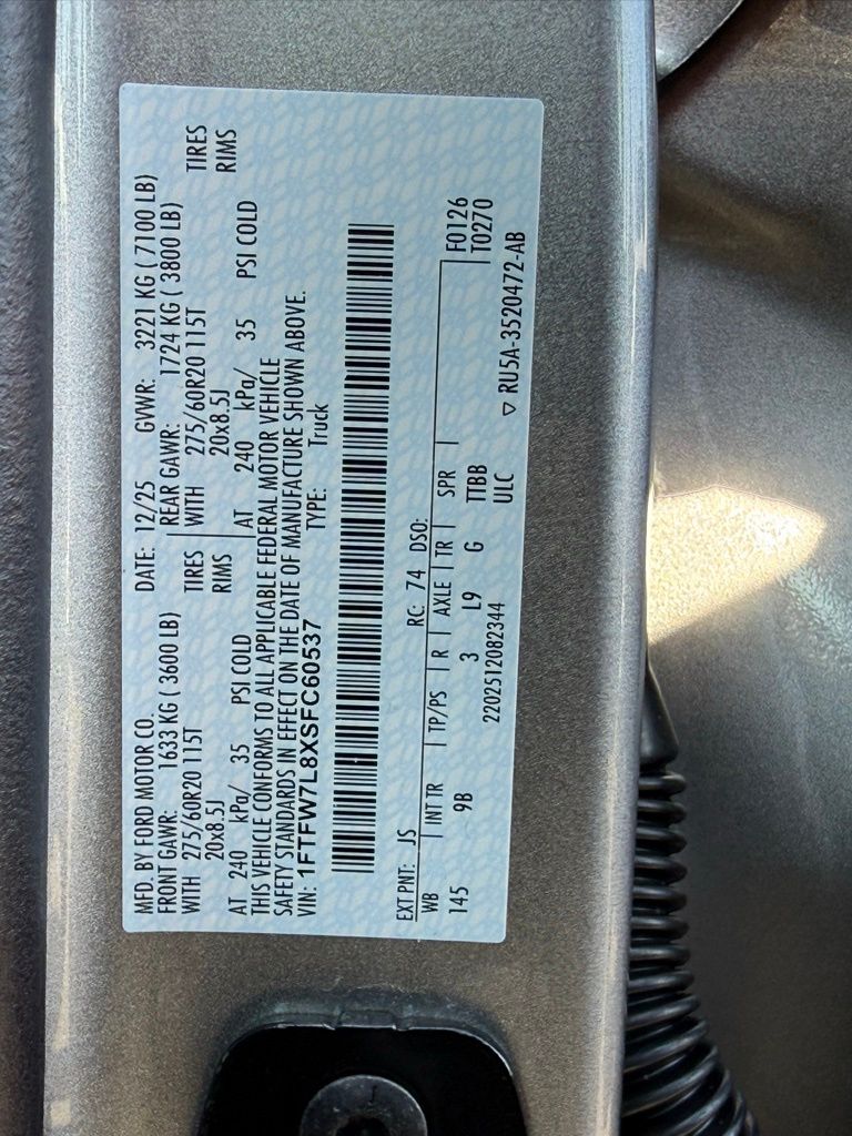 - 1FTFW7L8XSFC60537