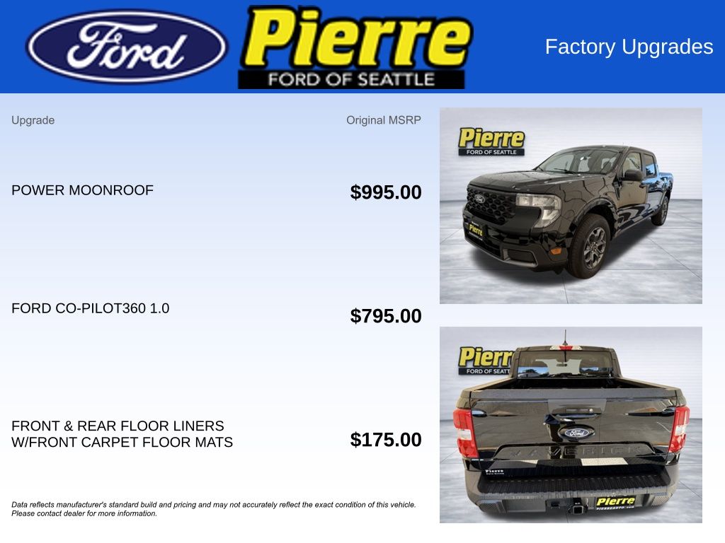 At Bill Pierre Ford, we service not only the Seattle area Ford customer needs, but also the entire state of Washington and beyond. Our customers come from Seattle, Bremerton, Bellevue, Everett, Wenatchee, Arlington, Burlington, Marysville, Lynnwood, Tacoma, and more. 2.5L I-4 Hybrid CVT Shadow Black All vehicles are one of each. A dealer documentary service fee of up to $200 may be added to the sale price or capitalized cost. All financing is subject to credit approval. Prices exclude tax, title, and license and are valid for Washington residents only. All transactions are negotiable including price, trade allowance, interest rate (of which the dealer may retain a portion), term, and documentary service fee. Any agreement is subject to execution of contract documents. Every reasonable effort is made to ensure the accuracy of this data. Please verify any information in question with a dealership sales representative. Expires (date) **FACTORY REBATE(S) Purchaser may not qualify for all rebates. Please contact sales department for details. Price includes: $1000 - Retail Customer Cash. Exp. 04/30/2026