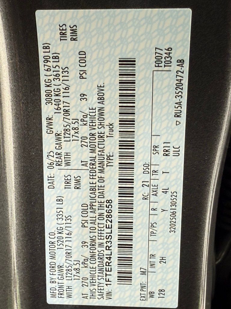 One-Touch Up/Down Driver Window, 12" Center Touchscreen, Ambient Lighting, Digital Instrument Cluster, Dual Illuminated Vanity Mirrors, Dual Zone Automatic Climate Control, Heated Steering Wheel, Power Locks and Windows, 12V and USB Powerpoints, Raptor Unique Power Heated Front Seats with Driver Memory, Blind Spot Information System with Cross-Traffic Alert, Anti-Lock Braking System, FOX Live Valve Shocks, Intelligent Access with Push Button Start, Lane Keeping System, Pre-Collision Assist with Automatic Emergency Braking, Rear View Camera, Remote Keyless Entry, Remote Start System, SiriusXM, SYNC 4A, Upfitter Switches.