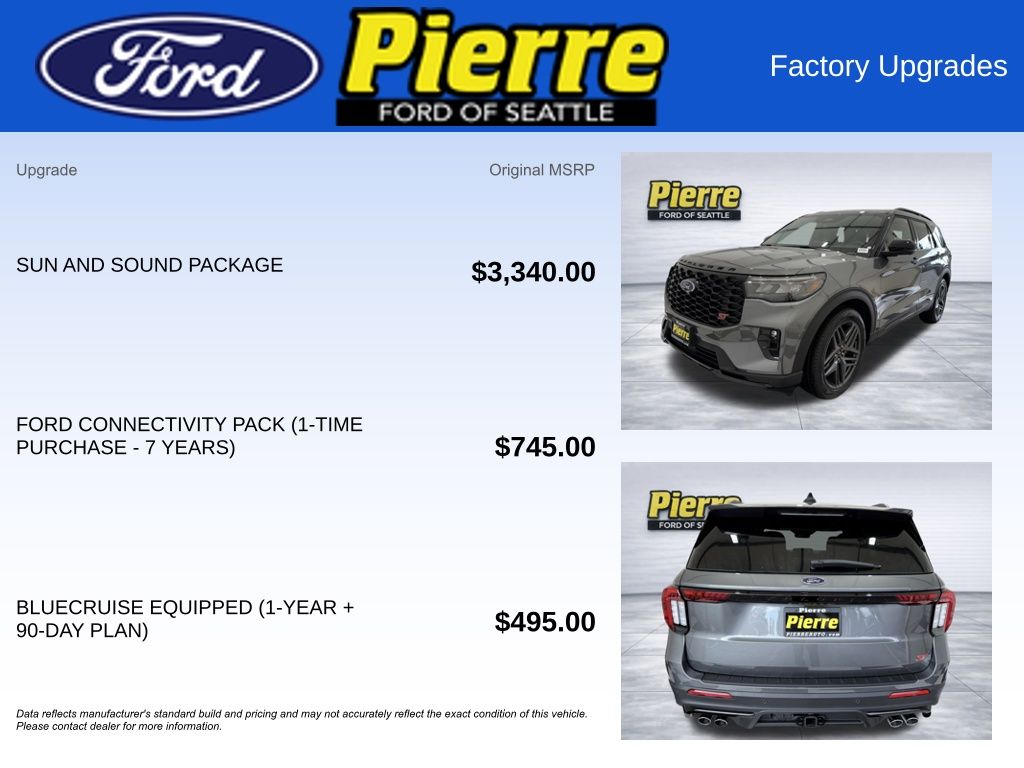 At Bill Pierre Ford, we service not only the Seattle area Ford customer needs, but also the entire state of Washington and beyond. Our customers come from Seattle, Bremerton, Bellevue, Everett, Wenatchee, Arlington, Burlington, Marysville, Lynnwood, Tacoma, and more. 3.0L EcoBoost V6 10-Speed Automatic Gray All vehicles are one of each. A dealer documentary service fee of up to $200 may be added to the sale price or capitalized cost. All financing is subject to credit approval. Prices exclude tax, title, and license and are valid for Washington residents only. All transactions are negotiable including price, trade allowance, interest rate (of which the dealer may retain a portion), term, and documentary service fee. Any agreement is subject to execution of contract documents. Every reasonable effort is made to ensure the accuracy of this data. Please verify any information in question with a dealership sales representative. Expires (date) **FACTORY REBATE(S) Purchaser may not qualify for all rebates. Please contact sales department for details. Price includes: $3500 - Retail Customer Cash. Exp. 03/31/2026
