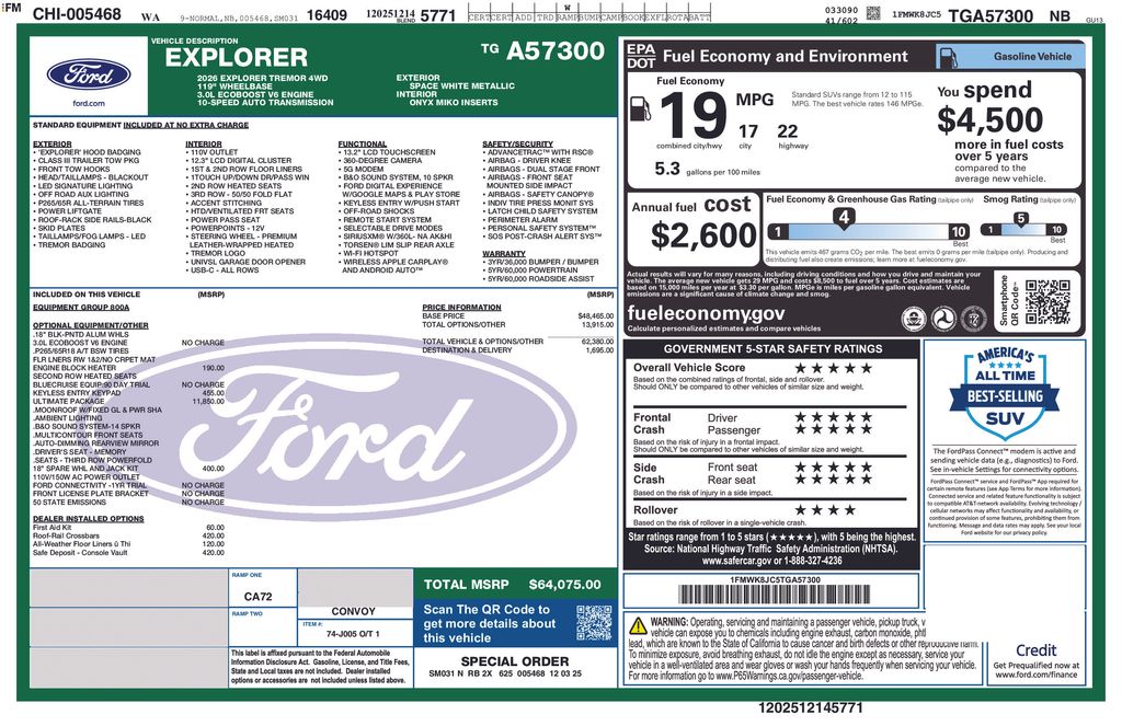 At Bill Pierre Ford, we service not only the Seattle area Ford customer needs, but also the entire state of Washington and beyond. Our customers come from Seattle, Bremerton, Bellevue, Everett, Wenatchee, Arlington, Burlington, Marysville, Lynnwood, Tacoma, and more. 3.0L EcoBoost V6 10-Speed Automatic White All vehicles are one of each. A dealer documentary service fee of up to $200 may be added to the sale price or capitalized cost. All financing is subject to credit approval. Prices exclude tax, title, and license and are valid for Washington residents only. All transactions are negotiable including price, trade allowance, interest rate (of which the dealer may retain a portion), term, and documentary service fee. Any agreement is subject to execution of contract documents. Every reasonable effort is made to ensure the accuracy of this data. Please verify any information in question with a dealership sales representative. Expires (date) **FACTORY REBATE(S) Purchaser may not qualify for all rebates. Please contact sales department for details. Price includes: $3500 - Retail Customer Cash. Exp. 04/30/2026