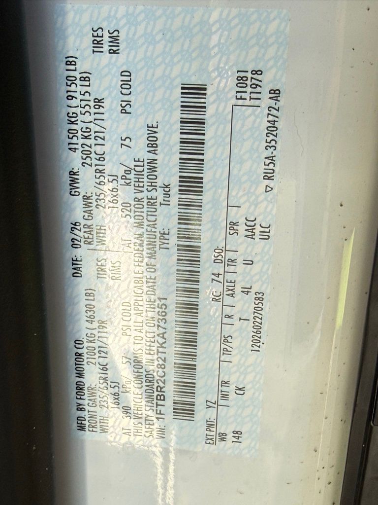 - 1FTBR2C82TKA73651