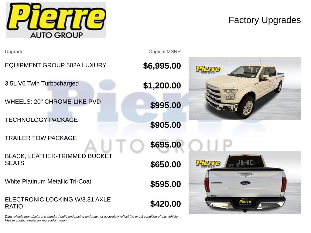 2015 Ford F-150 Lariat White Platinum Clearcoat Metallic 4WD 3.5L V6