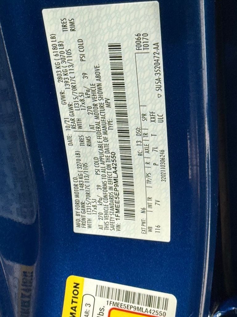 - Forward collision: Ford Co-Pilot360 - Pre-Collision Assist with Pedestrian Detection mitigation