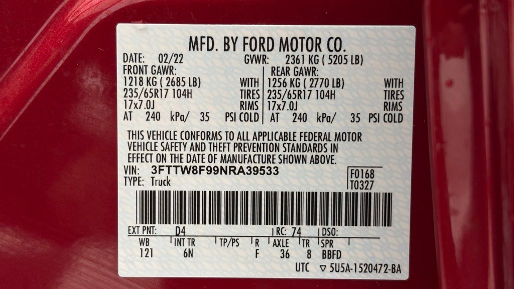 2022 Ford Maverick Lariat Red AWD EcoBoost 2.0L I4 GTDi DOHC Turbocharged VCT