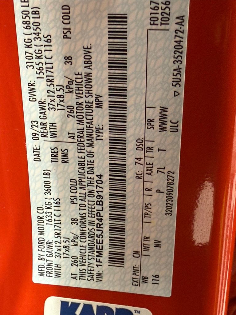 2024 Ford Bronco Raptor 4-door Advanced 4x4 ** engine: 3.0L EcoBoost V6 ** 10-speed automatic transmission ** code orange metallic exterior ** Onyx leather trim/black Onyx suede seats ** equipment group 374A ** Code Orange seat belts ** keyless entry keypad ** all-weather floor liners