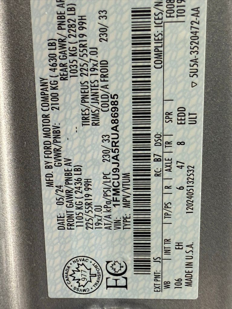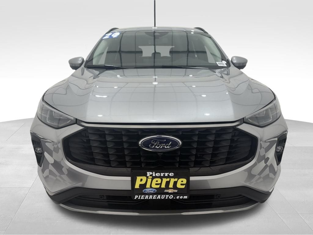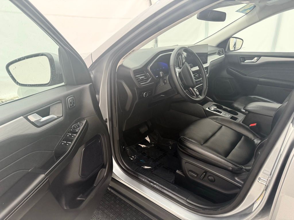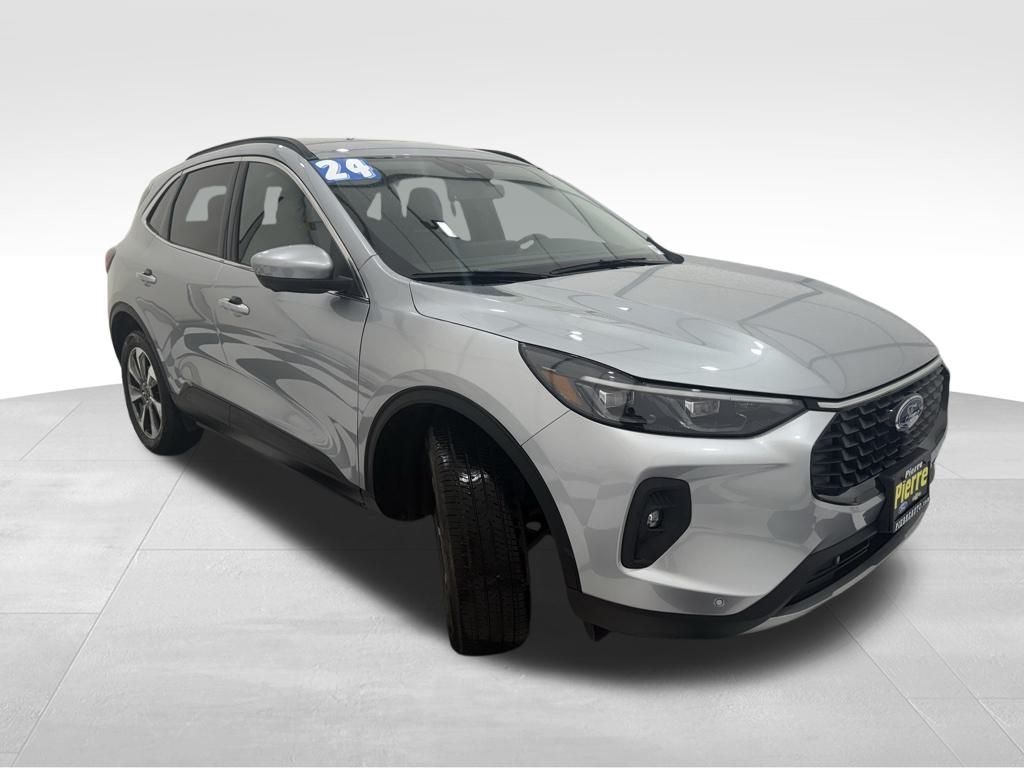 2024 Ford Escape Platinum AWD: ** Equipment Group 601A (hands-free liftgate, heated steering wheel, leather-trimmed seats, LED lighting, B&O sound system, Co-Pilot360 Assist+, power panoramic roof, wireless charging pad, adaptive cruise control) ** Ebony Active Trim seats ** 8-speed automatic transmission ** Silver Metallic exterior **
