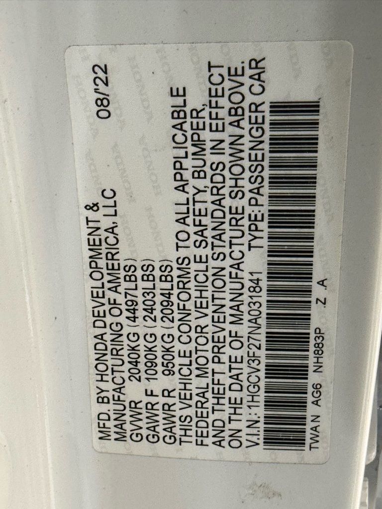 ** Sport Trim Package ($0) ** Crystal Black Pearl Exterior ($0) ** Black Fabric w/ Synthetic Leather Interior ($0) ** 19" Machine-Finished Alloy Wheels w/ Black Inserts ($0) ** 180-Watt HD Audio System ($0) ** Apple CarPlay & Android Auto ($0) ** Honda Sensing Safety Suite ($0) ** Adaptive Cruise Control ($0) ** Lane Keeping Assist System ($0) ** Forward Collision Mitigation Braking System ($0) ** 2.0L i-VTEC 4-Cylinder Hybrid Powertrain ($0) ** Electronic Continuously Variable Transmission (eCVT) ($0) ** Front-Wheel Drive ($0) ** 48 MPG combined / 44 city / 41 highway ** new MSRP was $32,165