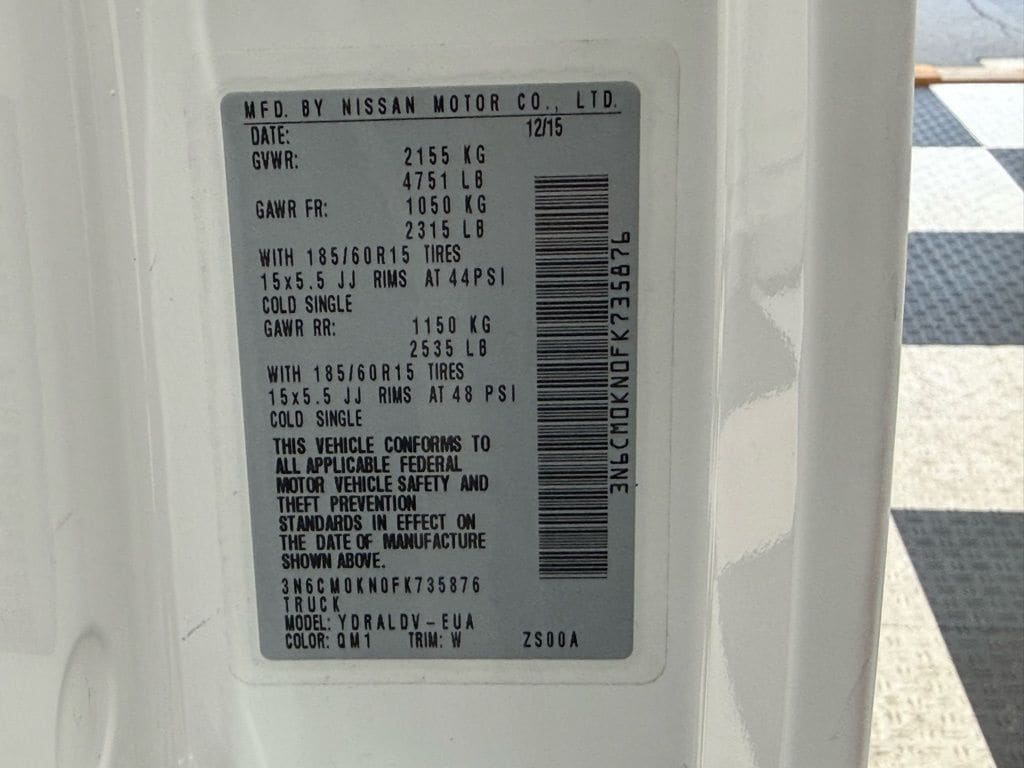2015 Nissan NV200 Cargo S in Fresh Powder ** Splash Guards Package ($145) ** Back Door Glass Package ($190) ** Back Door Privacy Glass w/Defroster ($100) ** Interior Privacy Mirror ($45) ** Bluetooth Hands-Free Phone System ($250) ** Mud Guards ($170) ** Blue Aura Body Side Molding ($200) ** All Season Floor Mats ($55) ** Destination Charge ($885) ** new MSRP was $22,285