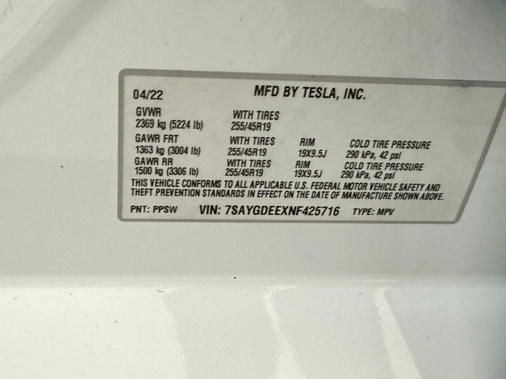 ** Pearl White Multi-Coat ($1,000) ** Long Range Dual Motor All-Wheel Drive ($65,990) ** 19" Gemini Wheels ($0) ** Premium Black Interior ($0) ** 5 Seat Interior ($0) ** Premium Audio System ($0) ** Dual Motor AWD (Front AC Induction / Rear Permanent Magnet) ($0) ** 1-Speed Automatic Transmission ($0) ** 255/45R19 Tires ($0) ** 330 Mile EPA Estimated Range ** 122 MPGe combined (131 city / 117 highway) ** Non-Refundable Order Fee ($250) ** Destination Fee ($1,200) ** new MSRP was $67,440 with Full Self-Driving Capability.